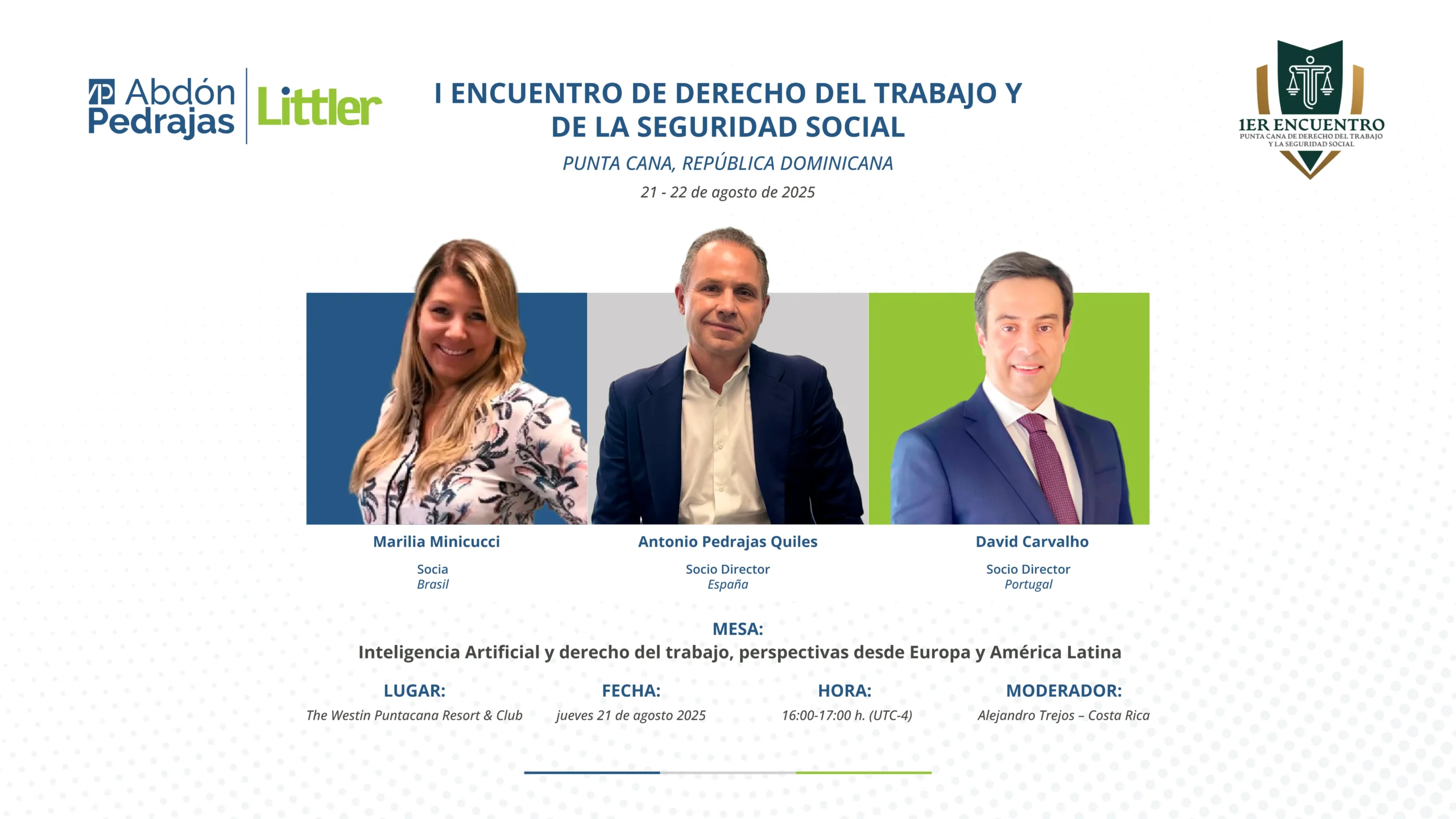 Orador en conferencias y seminarios promovidos por organizaciones nacionales e internacionales sobre temática relacionada con el Derecho del trabajo.